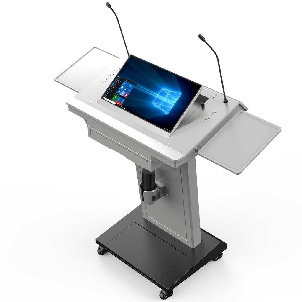 Интерактивная трибуна Wize WSP-22SL оснащена сенсорным монитором диагональю 21.5''. Положение монитора можно отрегулировать вручную в диапазоне от 0 до 70°. Бесшумный и прочный мотор позволяет плавно отрегулировать высоту трибуны от 101 до 113.4 мм. По бокам от монитора расположены две полки, где можно разместить необходимые документы. Интерактивная трибуна Wize WSP-22SL поставляется с двумя кардиоидными микрофонами типа «гусиная шея». Интерактивная трибуна Wize WSP-22SL идеально подходит для использования в конференц-залах и лекториях образовательных учреждений, государственных организаций и коммерческих предприятий.