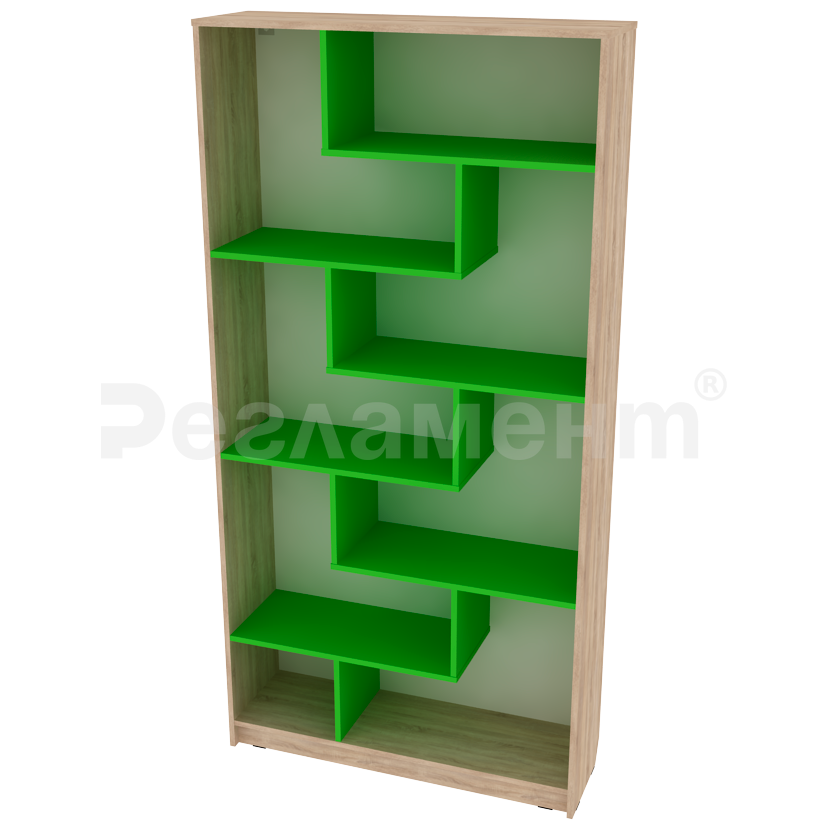Стеллаж демонстрационный, имеет размеры 1000х300х2000мм. Стеллаж изготовлен из ламинированной ДСП толщиной 16 мм, облицован противоударной кромкой ПВХ 0,4 мм. Стеллаж содержит 10 полок. ЦВЕТ ЛДСП - ДУБ СОНОМА/ЯСЕНЬ ШИМО СВЕТЛЫЙ/ОРЕХ ГВАРНЕРИ/БЕЛЫЙ/СЕРЫЙ ЦВЕТА ДЕКОРАТИВНЫХ ЭЛЕМЕНТОВ - БЕЖЕВЫЙ/ЖЕЛТЫЙ/ОРАНЖЕВЫЙ/ГОЛУБОЙ/ЗЕЛЕНЫЙ