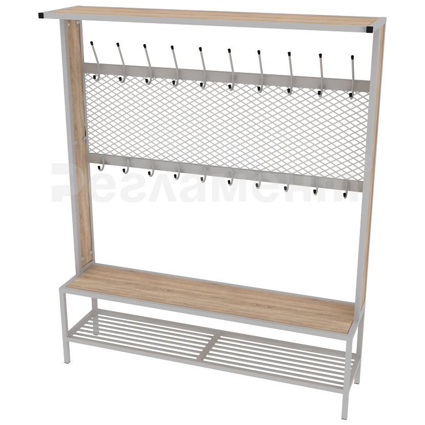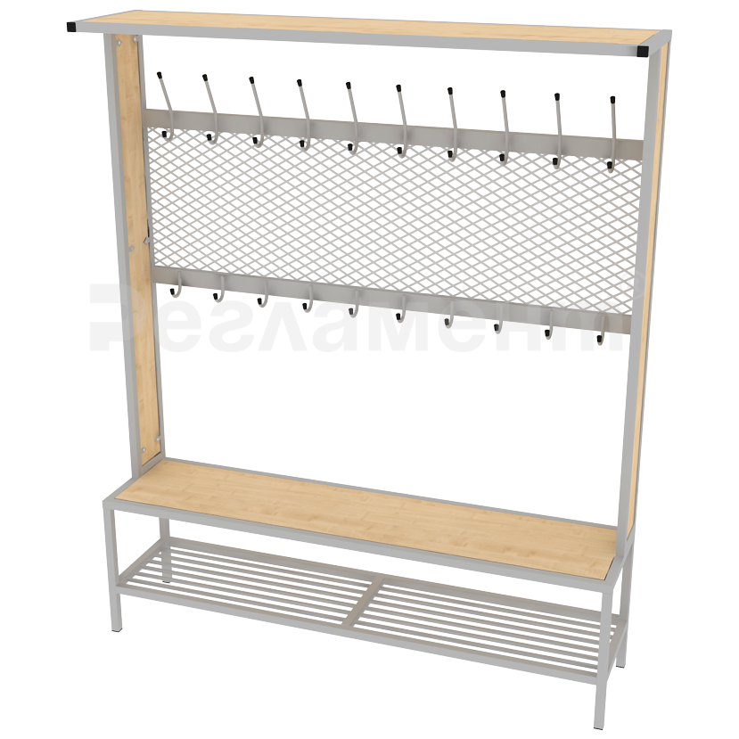 Вешалка гардеробная со скамьей и сеткой 1500х350х1800мм (ШхГхВ)