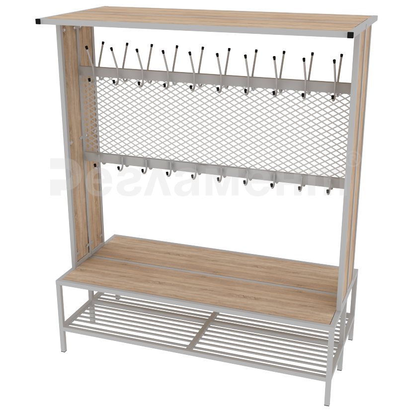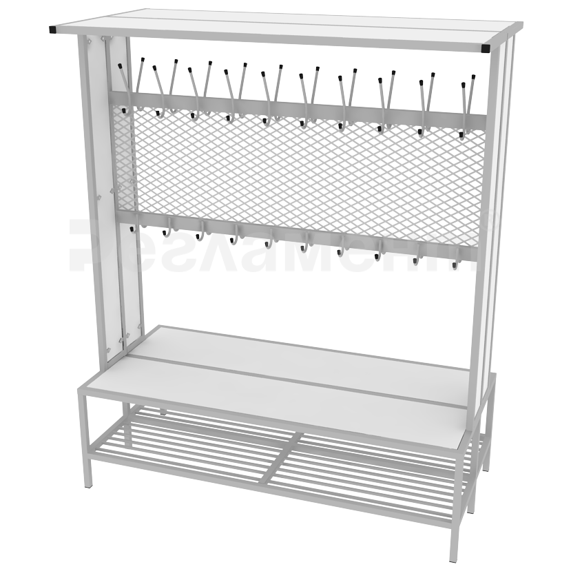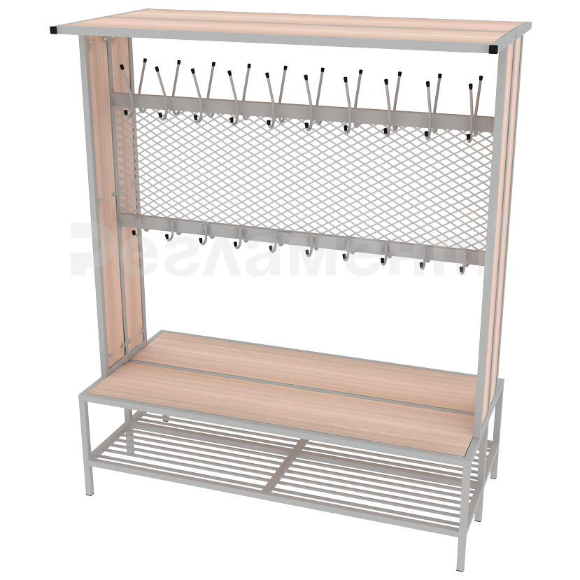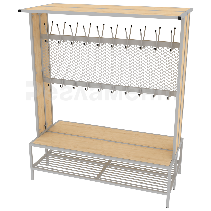 Вешалка гардеробная со скамьей и сеткой двухсторонняя 1500х700х1800мм (ШхГхВ)