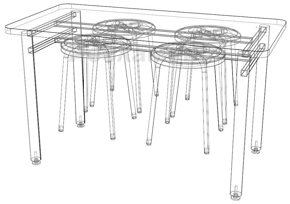 Комплект стола обеденного с 4-мя табуретами 1200х600х700мм (ШхГхВ)
